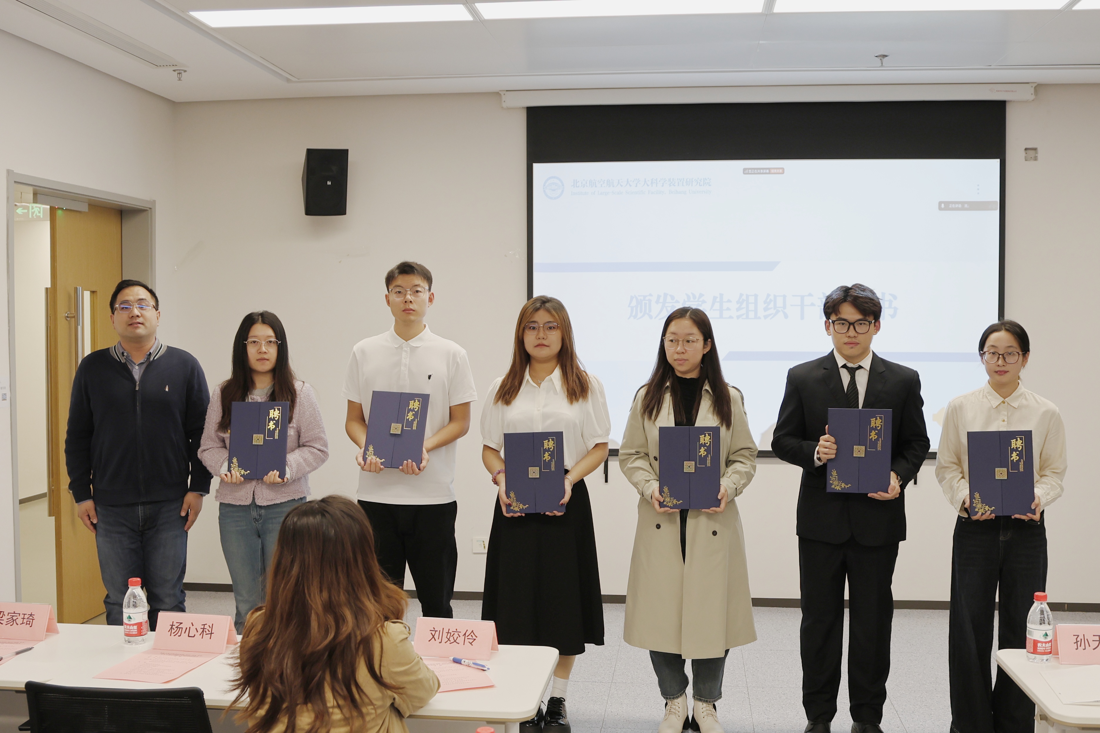 在聘任环节,学院老师分别为研究生会、学生媒体中心、学生心理健康中心的新一届学生骨干颁发聘书,鼓励全体学生骨干积极投身到各项学生工作中,为打造大科学装置研究院的“高效学工”、“品牌文化”、“阳光心理”与“立体宣传”格局贡献青春力量。