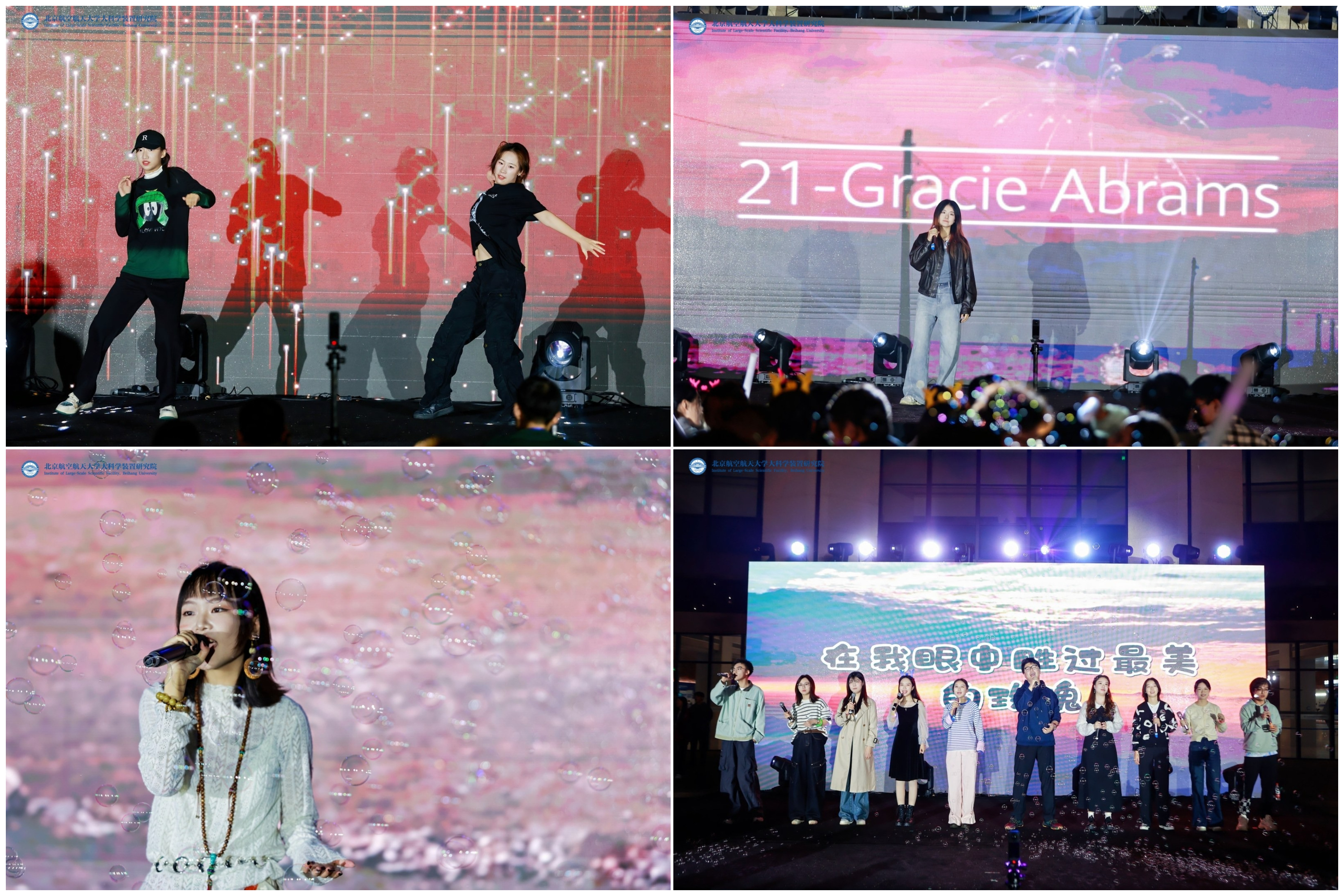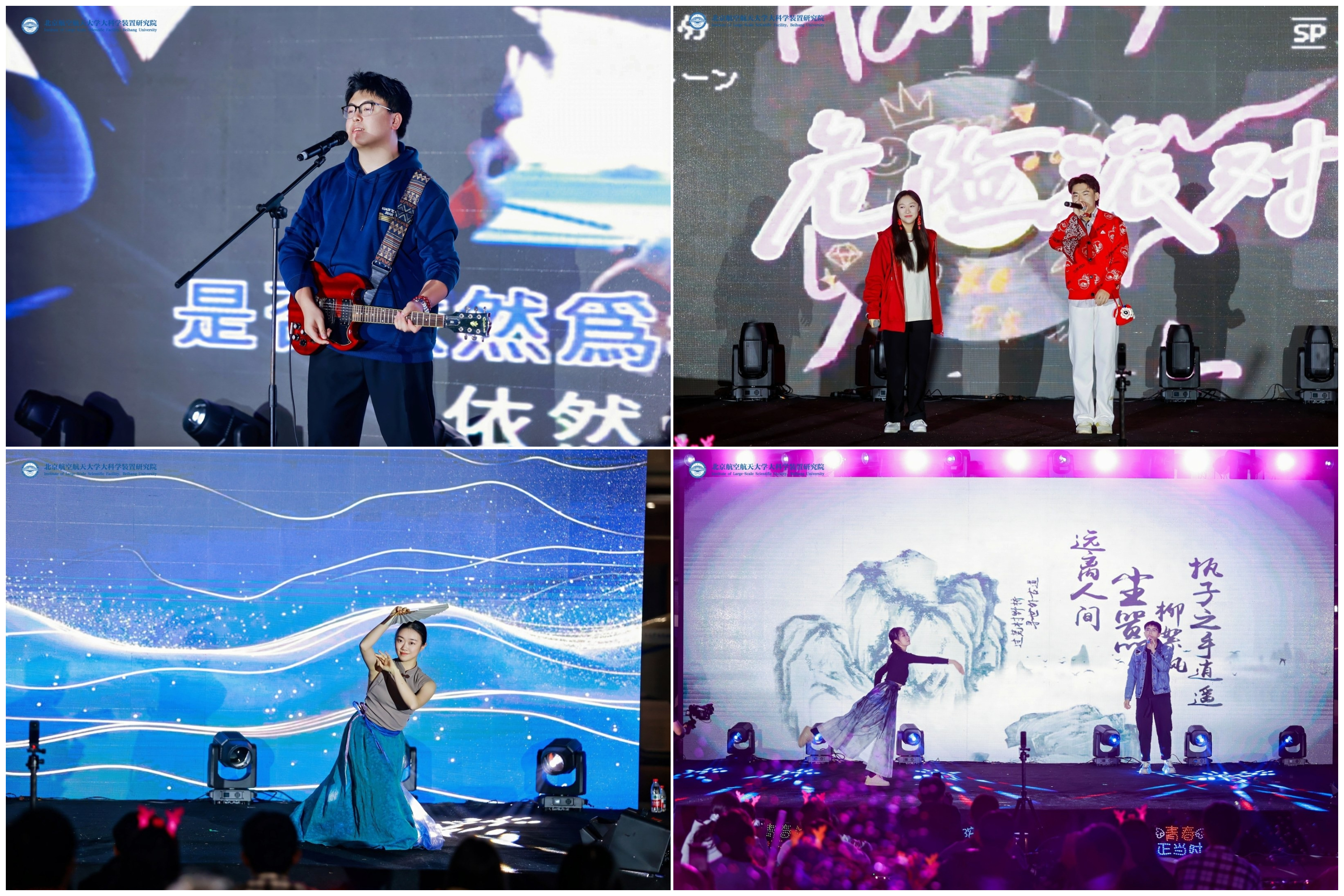 随后,丰富多彩的节目轮番上演,现场掌声热烈,气氛高昂。北航国际创新研究院的同学们带来的说唱、舞蹈、歌曲点燃全场,浙江音乐学院的同学们表演的朝鲜舞轻盈优美,大装置院的同学们也纷纷上台献出精彩的表演,同学们的倾情演绎为整场活动注入了多元色彩与文化魅力。不同风格的表演交相辉映,展现出同学们对生活真挚的热爱以及丰富的创造活力与文化自信。