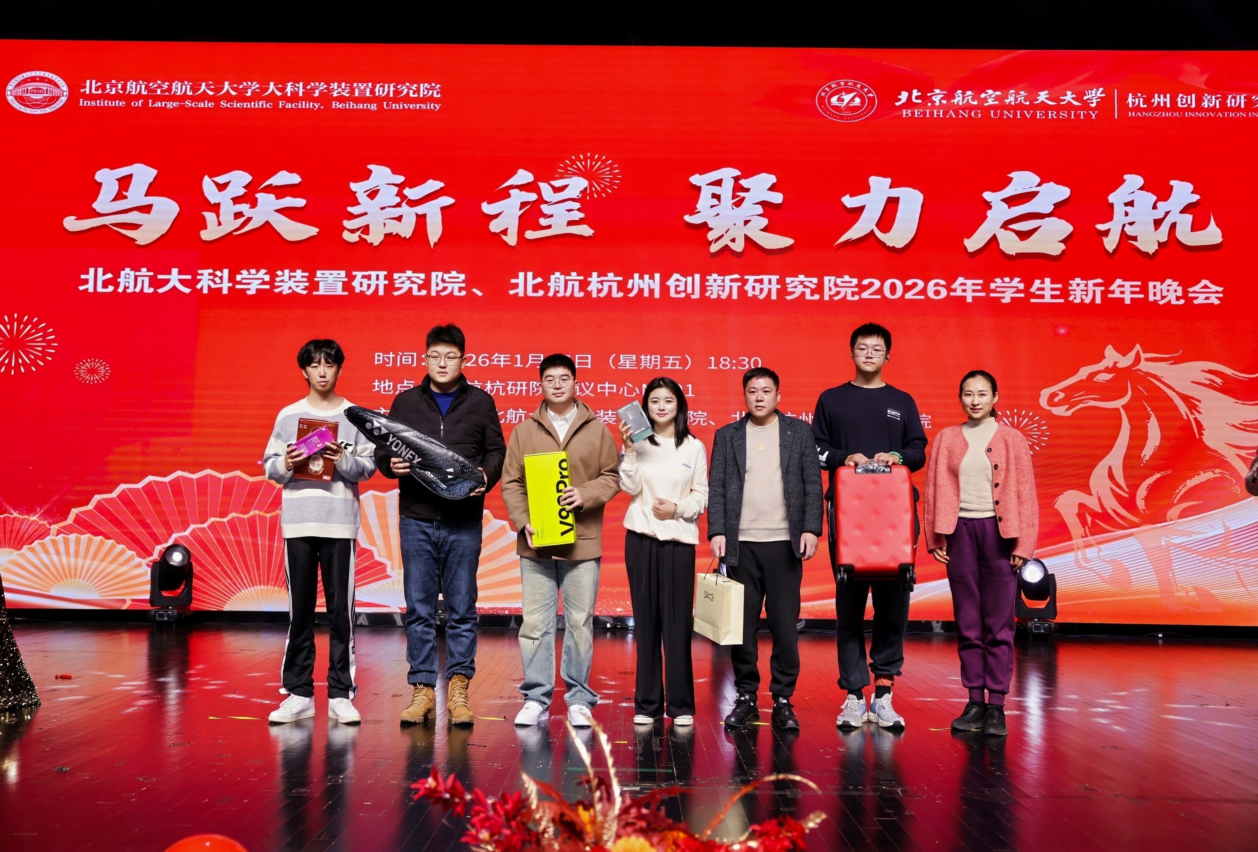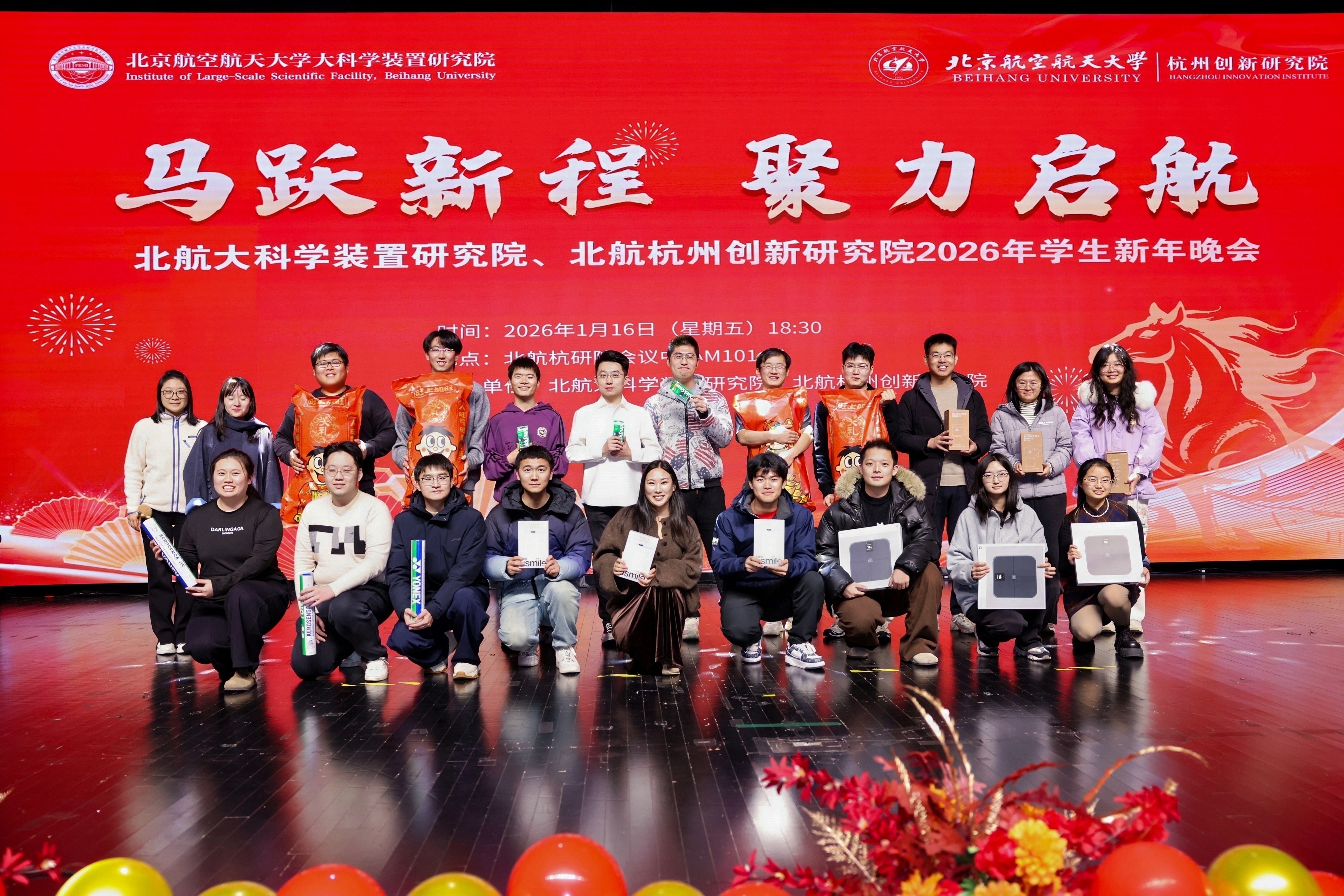 2026年1月16日晚,大科学装置研究院“马跃新程·聚力启航”学生新年晚会在北航杭州创新研究院会议中心圆满落幕。晚会以艺术为笔,以真情为墨,在时光的卷轴上勾勒出师生携手同行的动人画卷,为过去一年收束美好,也为崭新开局注入力量。