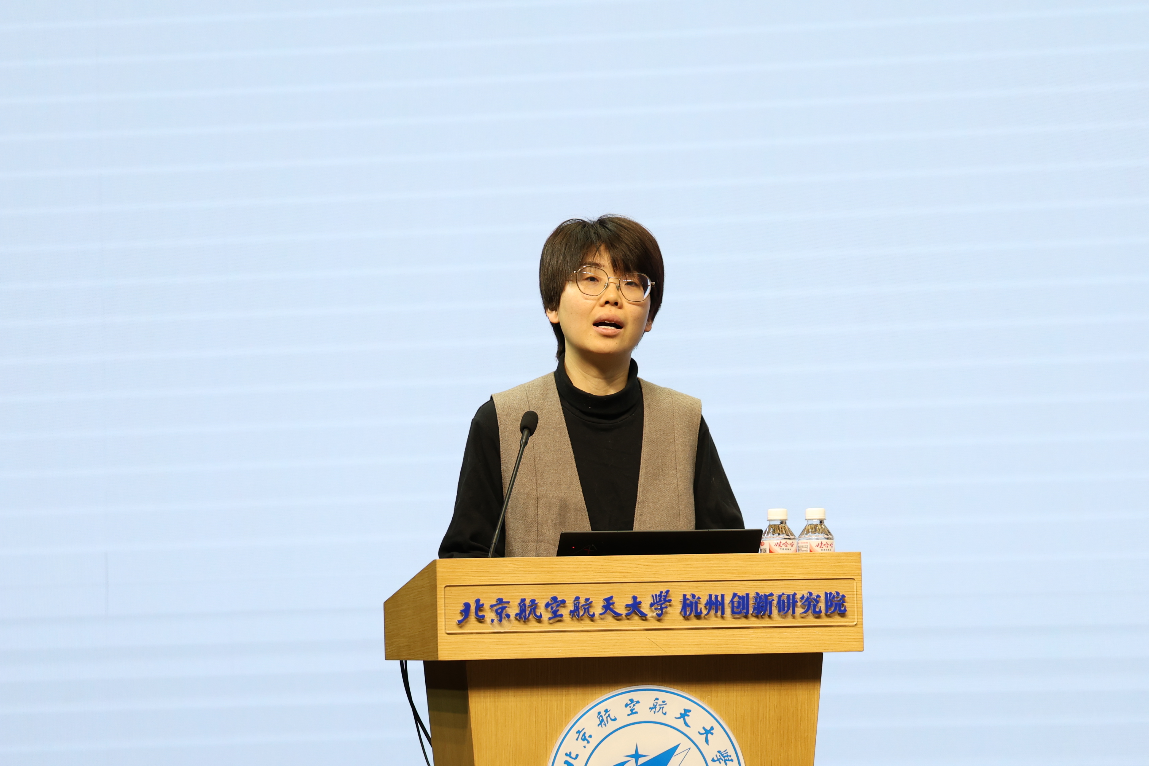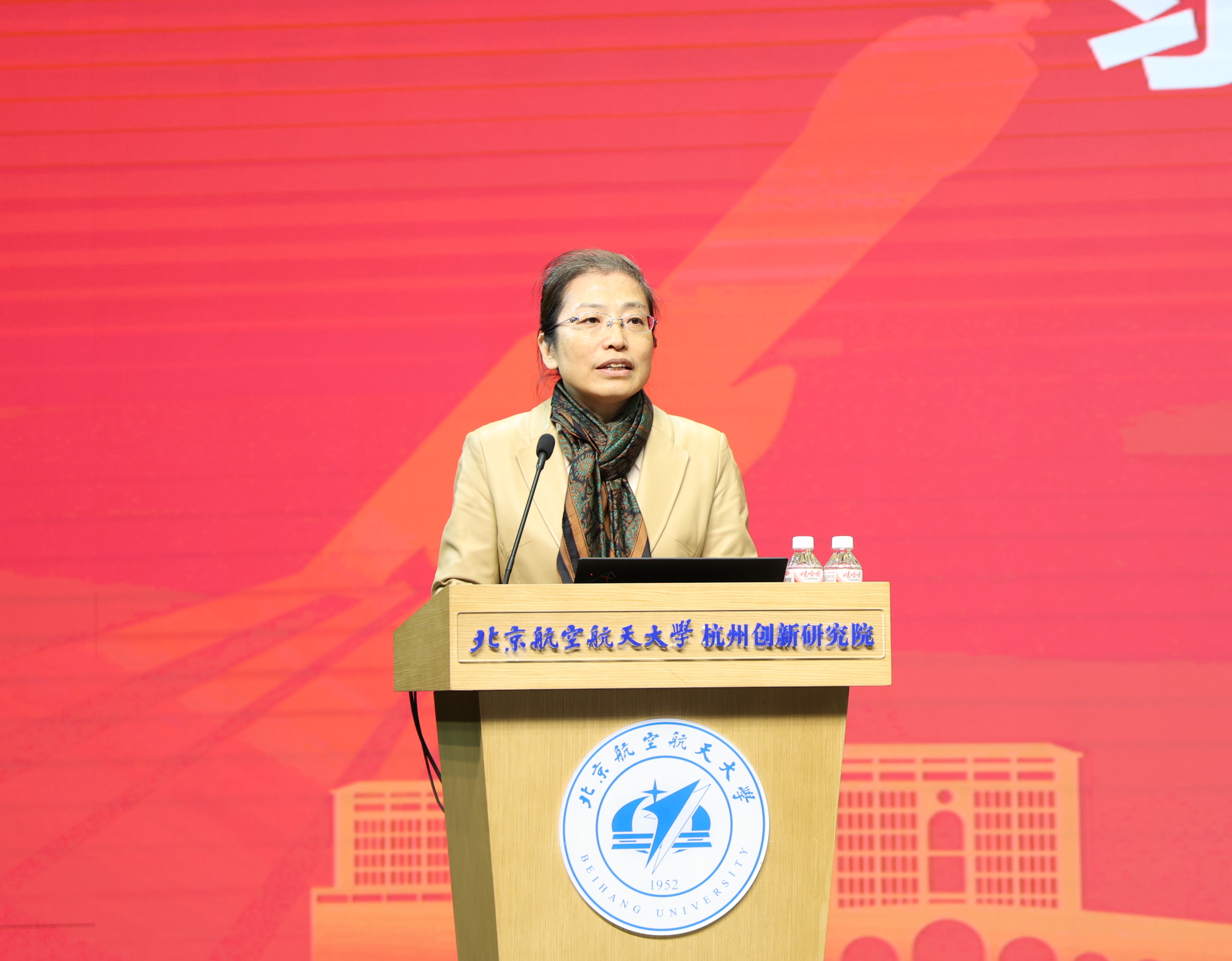 杭州极弱磁场国家重大科技基础设施研究院院长翁海娜致辞。她指出,人才是事业发展的根本支撑,大设施院将坚持“项目牵引、实战育人”培养路径,依托国家重大任务构建“双导师+多导师”联合指导机制,推动形成“项目大团队+指导小组”的融合模式。她热切期待同学们学成后留院奋斗,将个人理想融入国家科技蓝图。